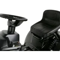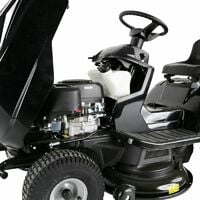 - Roues avant et arrière de différentes tailles, avec une large bande de roulement qui vous permet de travailler sur un sol inégal et inégal et de vous déplacer facilement près des obstacles, des plantes et des meubles de jardin